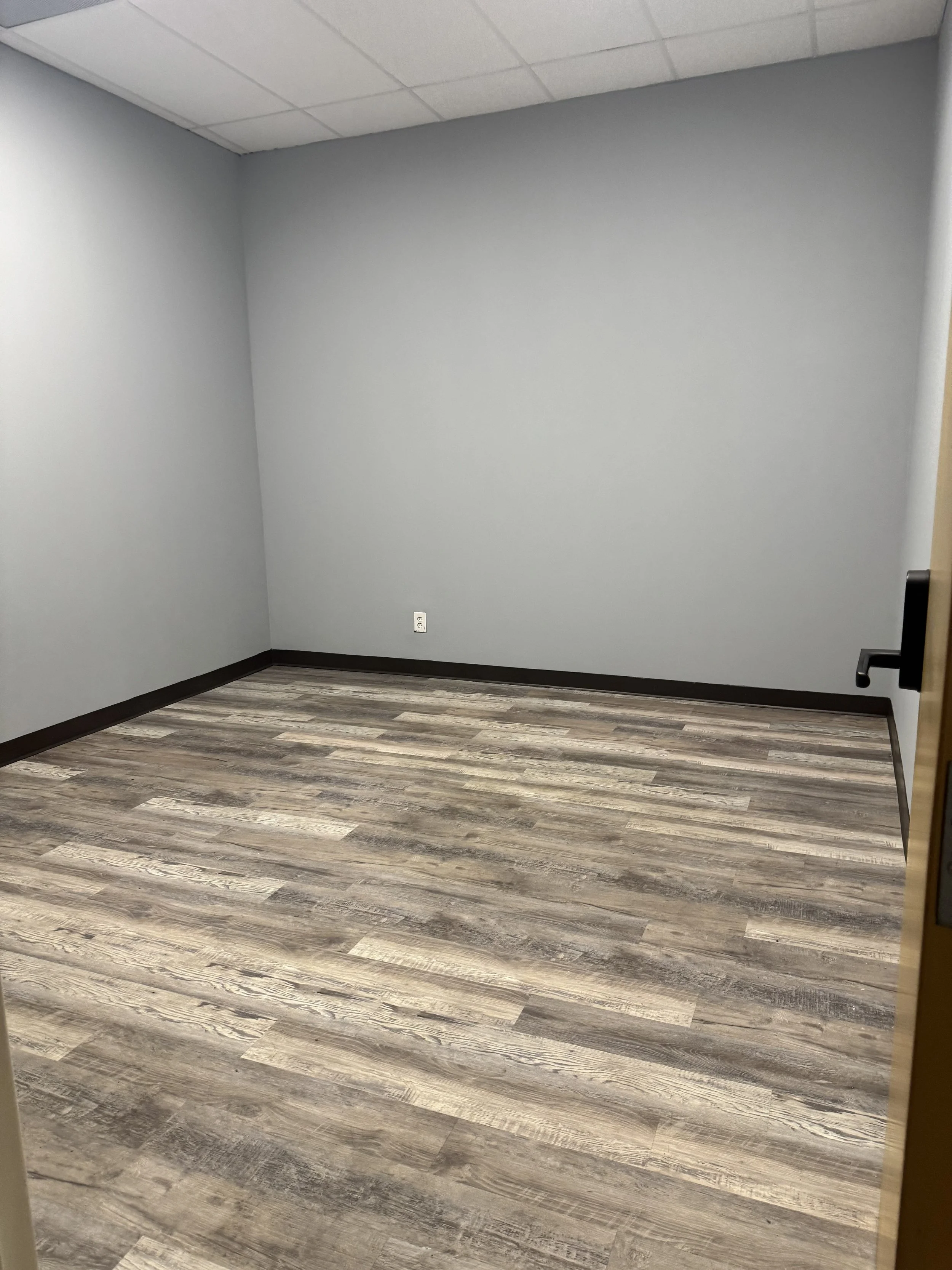 Simple elegance and prime location makes building 114 a luxury space for your business. Conveniently located beside a post office, building 114 is a prime location for your business. Each suite is sized at 14x11 with 10ft ceilings. There is a lobby with coffee station for your clients. Free Wi-Fi for suite owners and guests. We also have a security system with cameras. Each suite has a keyless entry for safety along with a custom door tag with business name. This is a beautiful location for mostly all businesses.